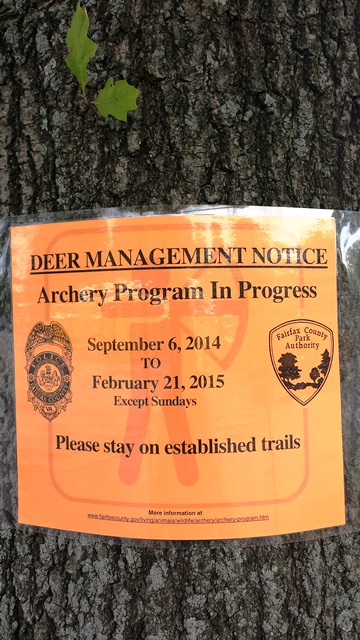 The Fairfax County Deer Management Archery Program begins Saturday, Sept. 6 and runs through Saturday, Feb. 21, 2015. Under the oversight of the Fairfax County Police Department in collaboration with the Fairfax County Park Authority and the Northern Virginia Regional Park Authority, the archery program is conducted in parks and other locations in Fairfax County.