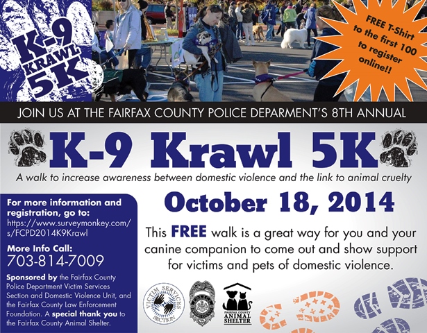 Register for the walk at https://www.surveymonkey.com/s/FCPD2014K9KRAWL.