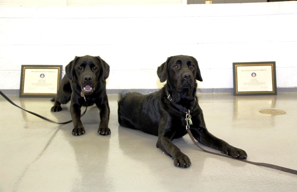 Tucker and Penny graduated from their 16-week K-9 training program last week. These two black labs are brother and sister and they have spent the last four months learning basic search techniques and explosive odors. Part of the Fairfax County Police Department’s Explosive Detection Team, they are now assigned to human partners who will continue their behavioral training.