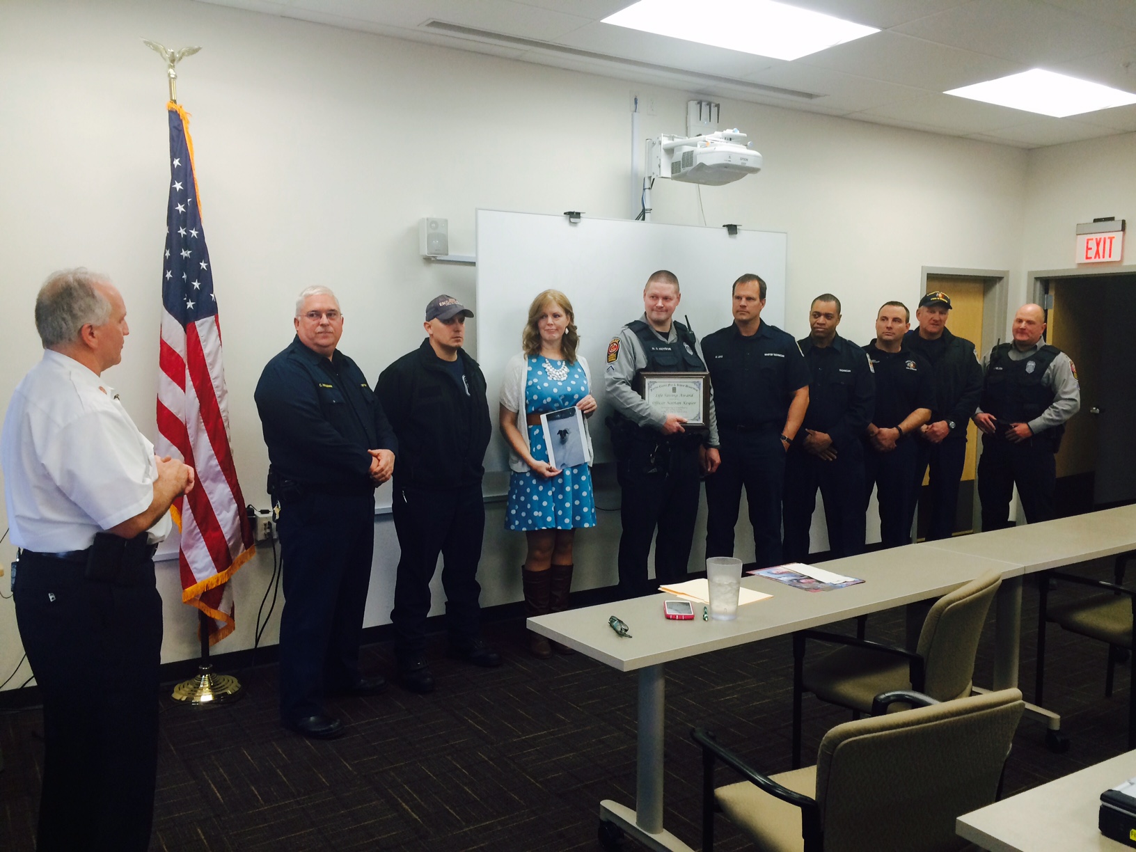 Fairfax County Fire Chief Richard Bowers awarded Keysor the “Lifesaving Award” at the Great Falls Volunteer Fire Department on Tuesday, March 24. Keysor’s family and police & fire colleagues, along with Susan Cassell, were there to support and congratulate him.