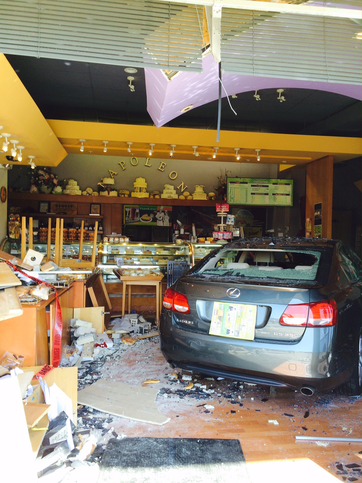 Six people were injured after a Lexus G8 350 smashed through an Annandale bakery storefront at around 2 p.m., Sunday, April 12.