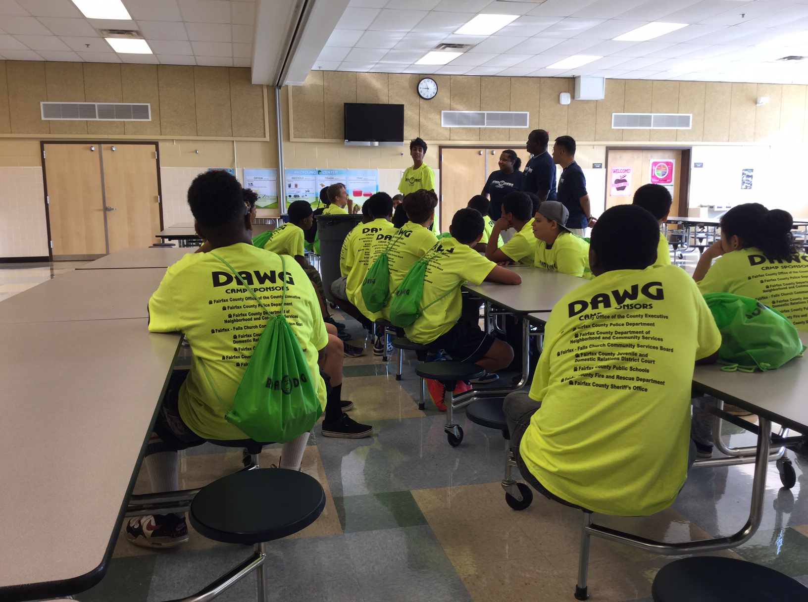 Today, students from around Fairfax County connected with their School Resource Officers (SROs) to begin their one week Road DAWG Camp! The camps are divided into three groups of approximately 25 students each. After breakfast, the students had a chance to introduce themselves to each other and to Road DAWG staff. Some of the places they visited were the police helicopter port, the Adult Detention Center, and the Animal Shelter.