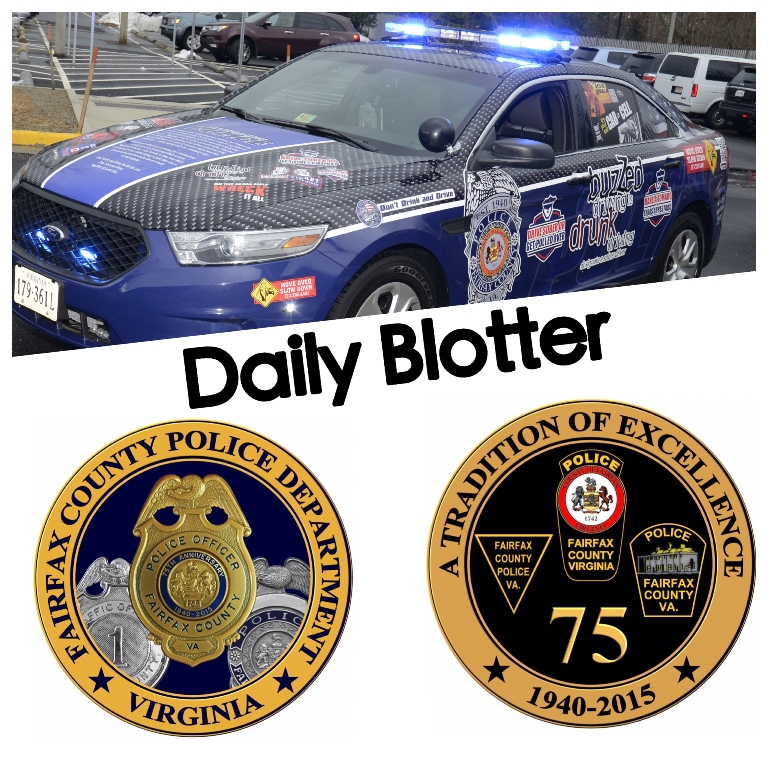 The report contains selected crimes, including animal-related incidents and property crimes. The information is organized by police district station. Addresses shown indicate blocks and not specific locations. This report is not a comprehensive list of every police event in Fairfax County in the stated time frame.