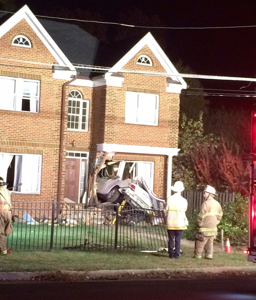 Preliminary, police believe that a 28-year-old man was driving a 2008 Honda eastbound in the westbound lane on Beacon Hill Road at a high rate of speed. He reportedly veered away from oncoming traffic, lost control and struck a curb. The vehicle then traveled over a curb, through a lawn and struck trees, a metal fence, and a home, coming to rest in the dining room of 6801 Smithway Drive. The driver was transported to the emergency room at Inova Mount Vernon Hospital where he was pronounced dead.