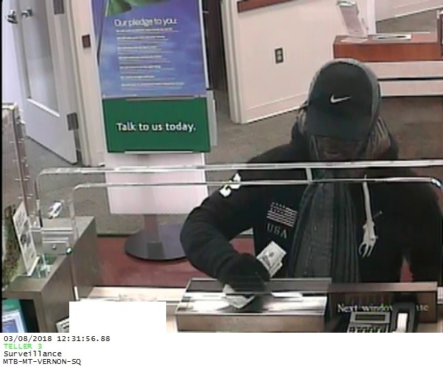 030818 – Mt Vernon Bank Robbery 1 Posted on March 8, 2018 by FCPD Public Affairs Bureau Next Return to Detectives Seeking Public’s Help in Identifying Bank Robbery Suspect