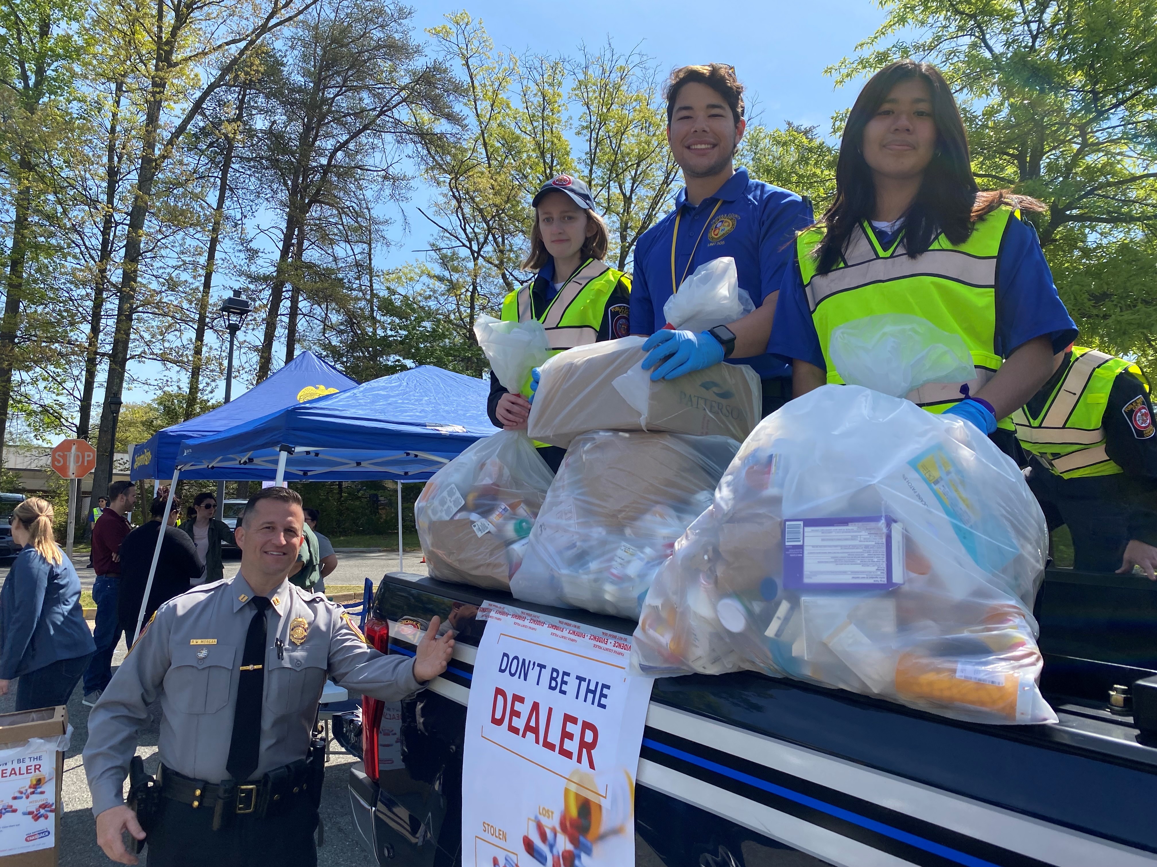 Our partnership with the Drug Enforcement Administration continued alongside several Fairfax County agencies for this year’s 22nd Annual National Prescription Drug Take Back Day initiative. On Saturday, April 30, officers from our eight district stations helped collect over 1,300 pounds of unused and expired over-the-counter and prescription medications from members of our community at drop off sites across the county. The totals for each station are listed below, along with the cumulative total: