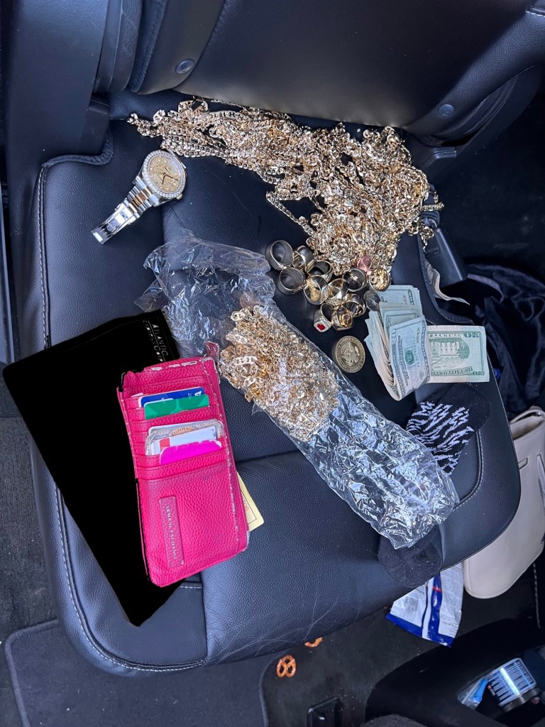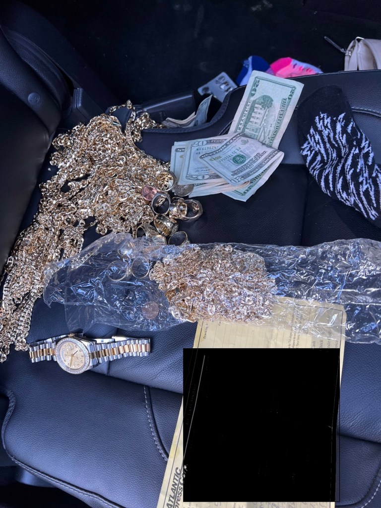 Officers believed this crew was likely operating in the area and continued to search for the black SUV used in the crime. On Nov. 3, an officer saw a gray Chevrolet Tahoe that appeared to be disabled on the Dulles Toll Road. The officer conducted a traffic stop and identified the occupants as Magdalena Mazil (right), 39, Hagi Voinescu (middle), 36, and Romeo Voinescu (left), 23 all from Baltimore. Officers obtained consent to search the vehicle and located large amounts of fake gold jewelry.