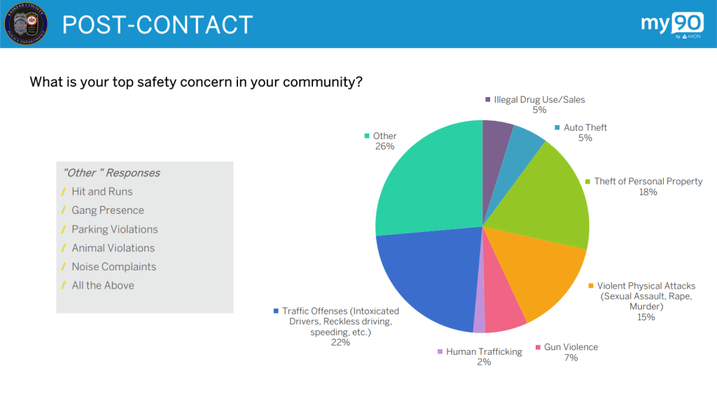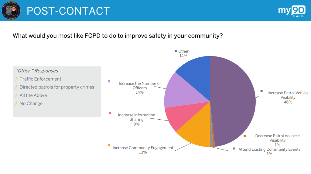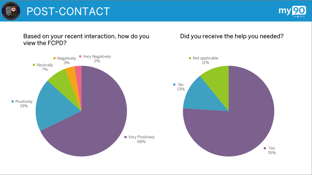 “My90 is one of many tools we use to engage with our community, better understand how the public feels about interactions with our department, and build trust,” said Chief Kevin Davis. “Since deploying My90, we have collected thousands of responses from all over Fairfax County and have the opportunity to review the valuable feedback we gain from community members we have just served.”