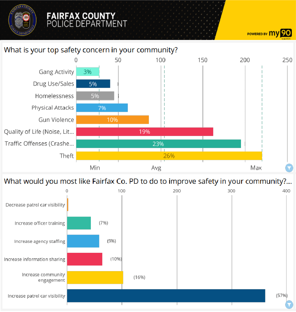 · Residents reported that their top local safety concerns were theft, traffic offenses, and