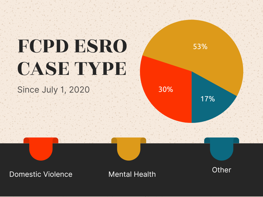 In 2022, FCPD created an ESRO coordinator to track ESROs as they progress, liaise with the Office of the Commonwealth’s Attorney, attend risk order hearings, and provide guidance to officers and detectives during the course of their investigations.