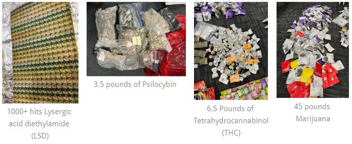 During the operation, the detectives successfully confiscated a range of illicit substances, including Psilocybin and LSD, along with two firearms. Additionally, they seized over $138k in cash, discovered several bank accounts, valuable jewelry, and even a Porsche SUV – all believed to be connected to the illegal operations.