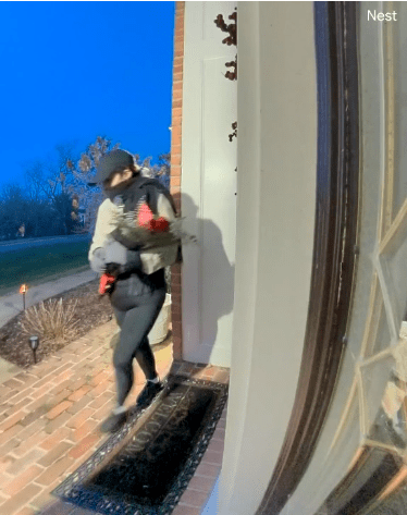 Since December 28, detectives have identified five burglaries that are believed to be connected. In four of the burglaries, a woman approached the home with flowers and knocked on the door. When no one answered, she returned to an awaiting vehicle. Two men then forced entry into the home and stole valuables. The items stolen from the homes included jewelry, cash, and purses. The suspects have attempted to conceal their identities by obscuring and tampering with home surveillance cameras.
