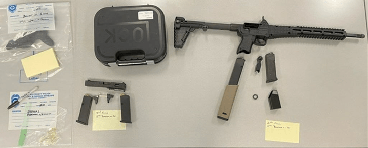 In the juvenileās home in the 11500 block of Cypress Point Court, detectives recovered a 9mm rifle, a handgun, ammunition, suspected Schedule I/II narcotics, and suspected psilocybin mushrooms.