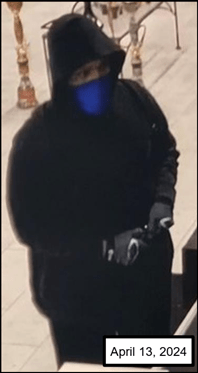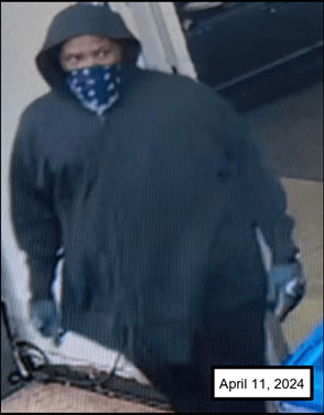 On April 11, at approximately 11:00 p.m. the same suspect entered the Shell gas station at 8500 Richmond Highway in Woodlawn and demanded cash. The suspect took money from the register then pepper sprayed the clerk. The suspect ran from the business prior to police arrival. The victim was treated at the scene for minor injuries.