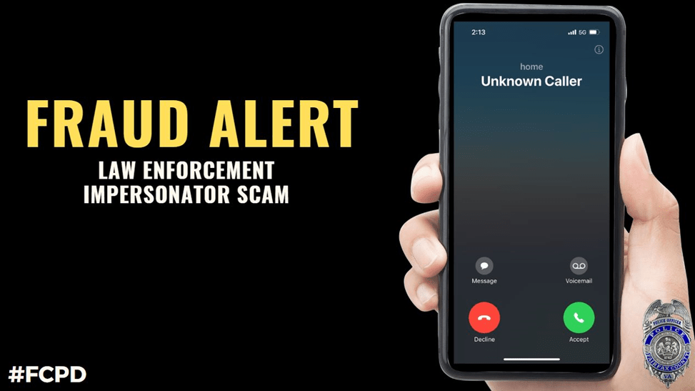Fairfax County, VA – FCPD’s Financial Crimes Unit is working to ensure that community members never fall victim to scams of impersonators claiming to be law enforcement officers. The unit wants to educate the public on identifying and recognizing these scammers and how to report them.