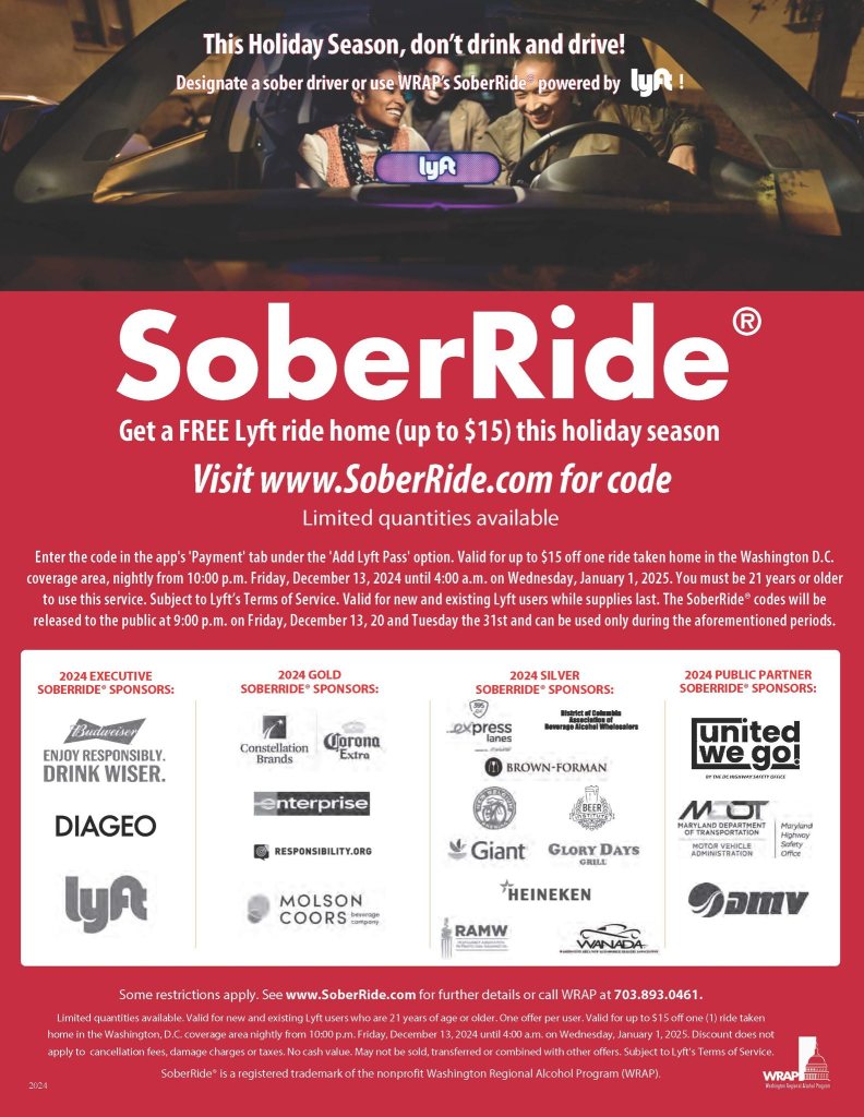 For those celebrating in the Washington, D.C. metro area, the Washington Regional Alcohol Program (WRAP) offers a fantastic resource: the SoberRide Program. This initiative provides free Lyft rides (up to $15). The next promo code will be shared on New Year’s Eve—stay tuned to WRAP’s website and social media for the details.