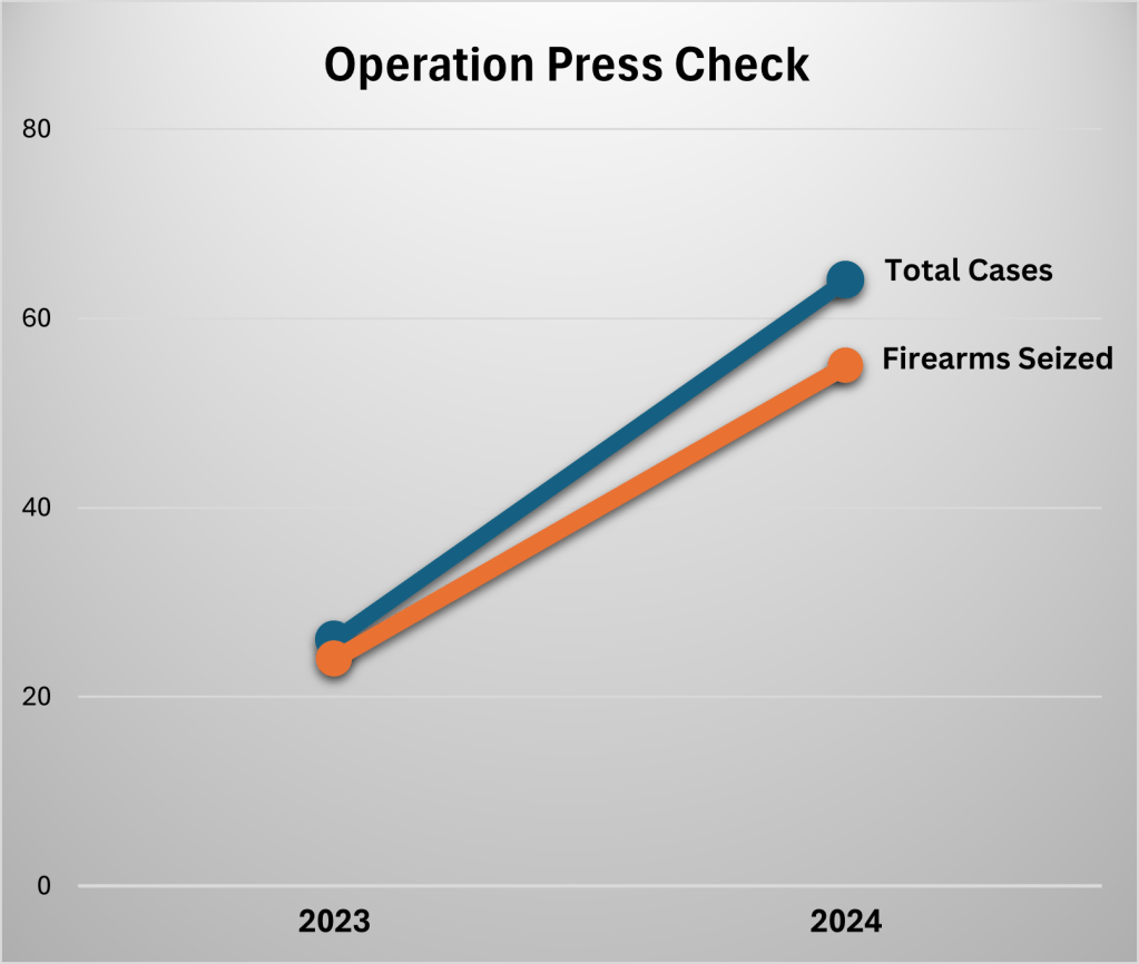 Operation Press Check achieved significant milestones in 2024, showcasing the ongoing effectiveness of the program. Below is a breakdown of the program’s results compared to 2023: