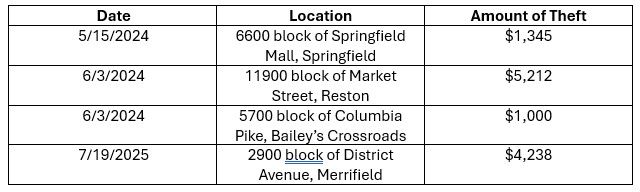 Detectives are asking anyone with information regarding these incidents or others to call our detectives at our McLean District Station at 703-556-7750 option 2. Tips can also be submitted anonymously through Crime Solvers by phone at 1-866-411-TIPS (866-411-8477), and by web – Click HERE for a reward up to $5,000.