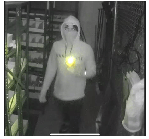 On September 16, at 4:33 a.m., officers responded to the 7300 block of McWorther Place in Annandale for a burglary report. Officers determined that two suspects broke into the business and stole tools and power equipment. Below is a still image of the suspect.
