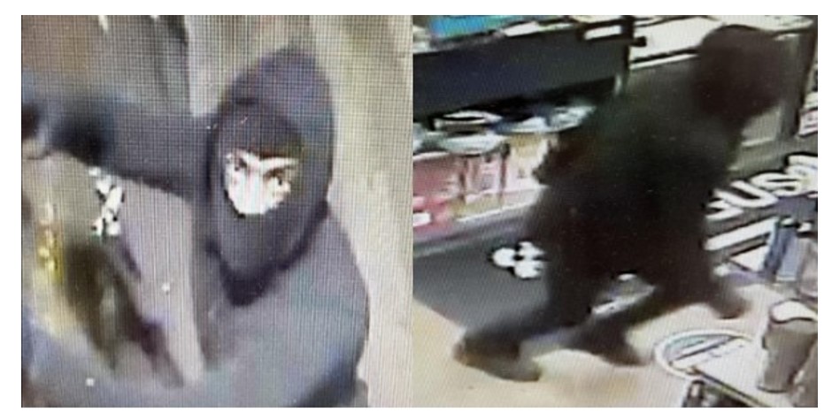 Officers reviewed surveillance footage and observed two masked men break into the business at 1:24 a.m. The suspects were seen stealing merchandise before exiting.