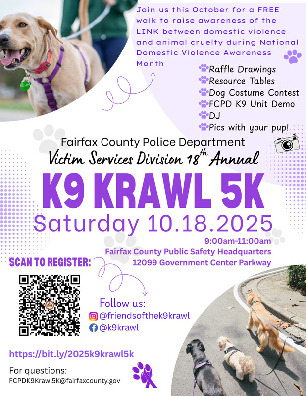 Check here to register and for more information please email FCPDK9Krawl5K@fairfaxcounty.gov.