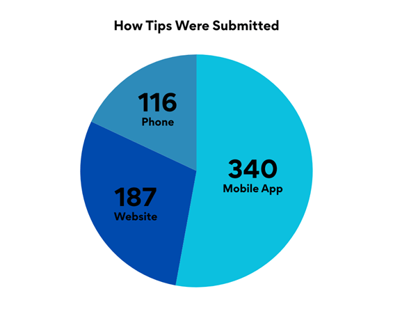 Tips were submitted across multiple platforms in 2025: