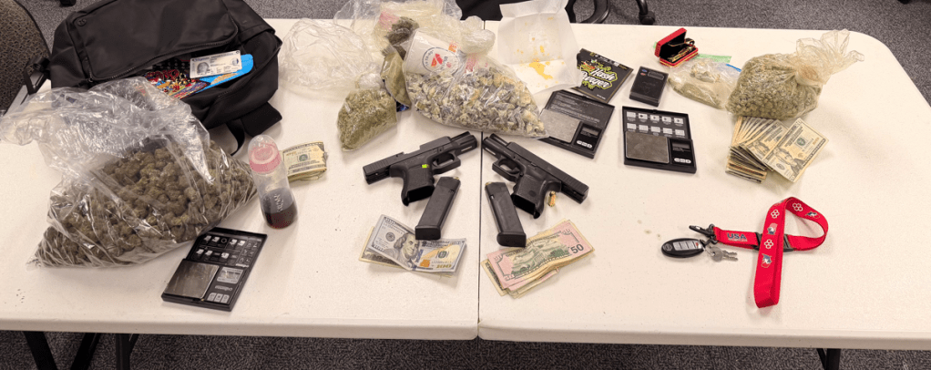 A subsequent search of the vehicle led to the discovery of a second firearm, along with evidence consistent with the distribution of narcotics involving suspected marijuana and mushrooms. Detectives from our Narcotics Unit responded to assist with the investigation.